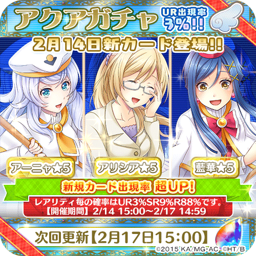 - 2017/2/2(木)15:00~アクアガチャ&チケットガチャ「藍華裏誕生日記念フェス」